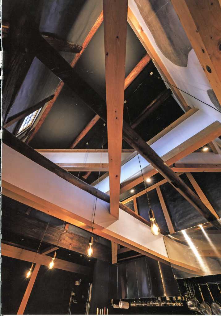 これらの部屋の天井は取り除かれ、高さの異なる層状構造が露出しました。これらの違いを平和化するのではなく、プロジェクトはそれらを受け入れています。キッチンカウンターの上を走る、細いパネル張りの帯と統合照明が導入され、移行を促しました。追加の照明ポイントは梁に直接組み込まれ、将来の居住者が自分の器具で空間を適応できるようにしました。