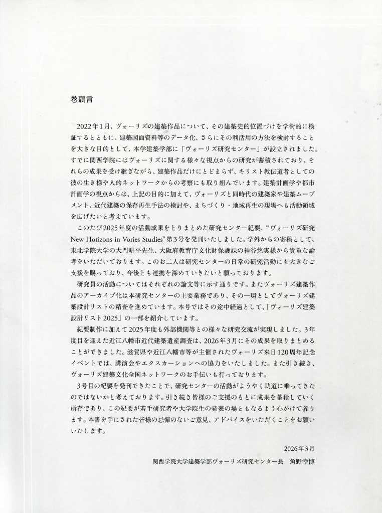 New Horizons in Vories Studies 2026.03.31